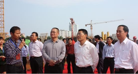 11月23日下午,湛江市委副書記、代市長王中丙,副市長陳岸明在徐聞縣委書記鐘力、縣長林海武的陪同下,視察了安糧·藍海城市廣場。