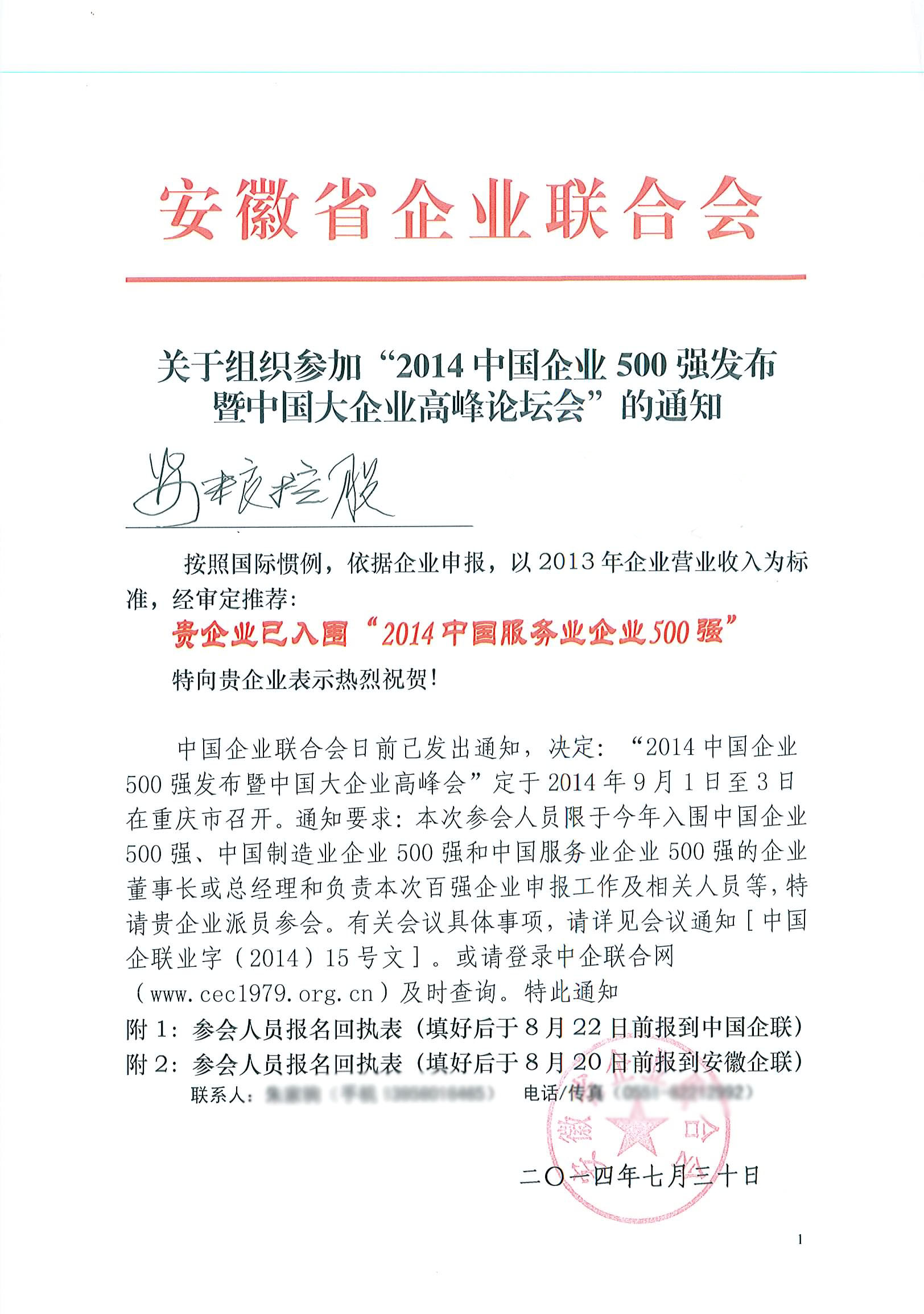 2014中國服務業企業500強