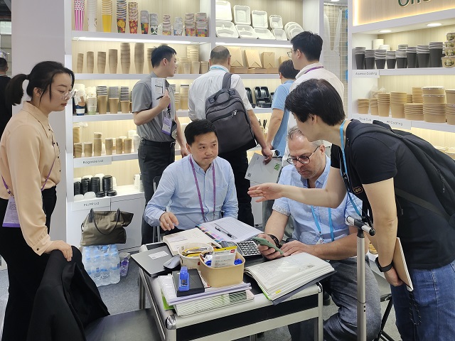 安糧家居展位由安糧國(guó)際日用品事業(yè)部攜數(shù)百款單品展出,產(chǎn)品幾乎覆蓋一次性餐廚全套系列。本次展會(huì)重點(diǎn)推出了全新的PHA高端系列以及壽司盒、紙盤、甘蔗漿吸管、超細(xì)纖維抹布等新品,在館內(nèi)格外醒目、深受青睞。此外,部門順應(yīng)綠色環(huán)保趨勢(shì),推出了一系列最新環(huán)保產(chǎn)品,吸引了不少具有環(huán)保意識(shí)的客戶群體關(guān)注。攤位模擬國(guó)外超市擺放,仿造小型超市。擺放的產(chǎn)品統(tǒng)一設(shè)計(jì)包裝,著眼聚焦“產(chǎn)品系列化+全流程服務(wù)”,為全球采購(gòu)商提供便利的“一站式采購(gòu)服務(wù)”,獲得新老客戶的一致認(rèn)可與好評(píng)。