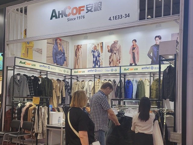 服裝部注重“時尚、科技、綠色”的品牌理念,此次參展著重向客商們展示成衣的功能性優勢,比如防潑水,隔熱性,防紫外線等性能。從實用的pu雨衣到時尚的毛呢外套,時尚與實用兼備,服裝部的每一件產品都體現了對美好生活品質的執著追求,獲得眾多客商青睞。